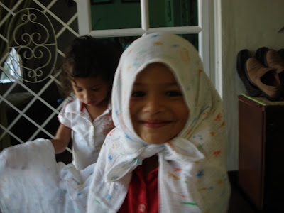 Belum tarawikh lagi girls baru pukul 4.00 petang ni..Mia is avery independant girl..Tia smart tapi manja..Mia tak kisah very happy go luck..suka kemas rumah..kalau baca buka dia concentrate..kalau mengira kat abacus pun dia kira sampai habis..sekarang dah pandai ikut mama nanyi lagu "rock a bye baby","kereta baru","air pasang dalam "twinkle twinkle little stars"..kelakar betul bila dengar baris lagu air pasang dalam tu dia orang nyanyi boleh sebut betul2 "itik bertelur ayam mengeram"