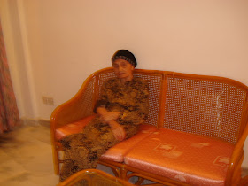Uwan tersandar kenyang after dinner dengan Satay Hj Samuri..duduk bergaya dengan jubah Heni beli kat dia kat Indonesia.